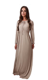 Toffee coloured high-waisted nightgown with attractive shoelace closure.